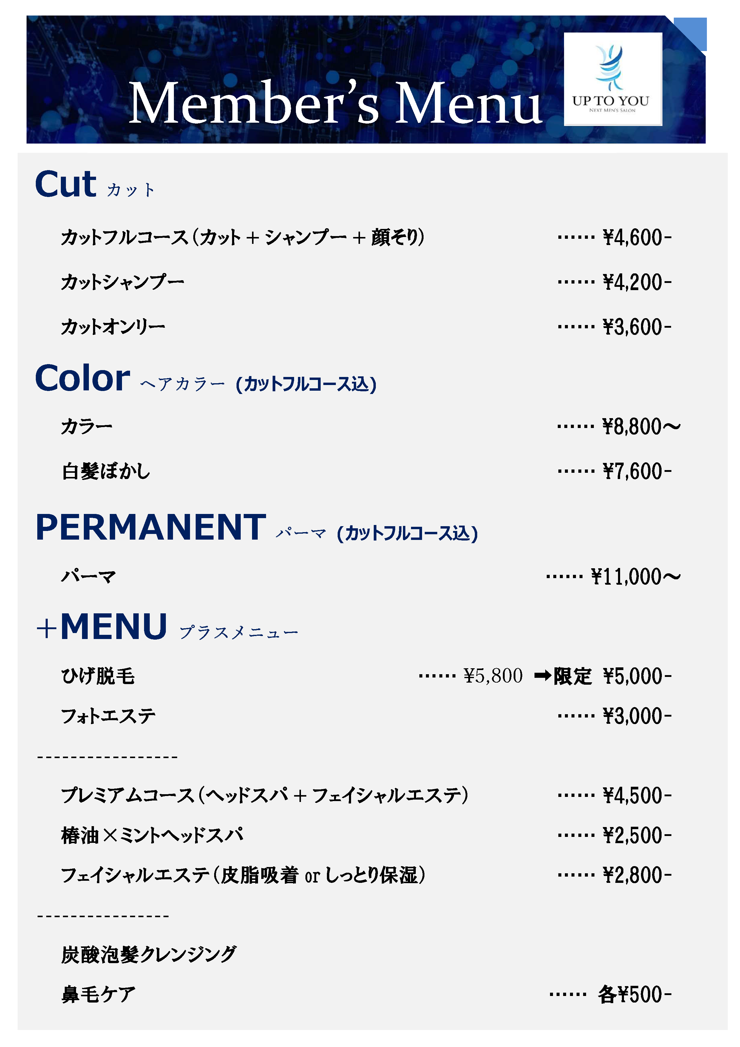 next men’s salon UP TO YOU のホームページをご覧いただき誠にありがとうございます。